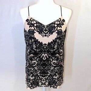 Express | Lace Print Barcelona Cami Tank Top in Nude & Black | Size Small