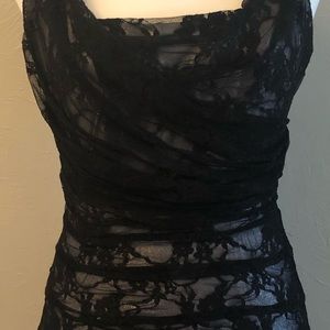 Form fitting Express Lace Ruched Dress with square neck. Gorgeous on!