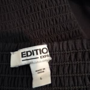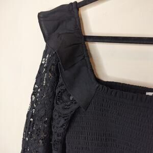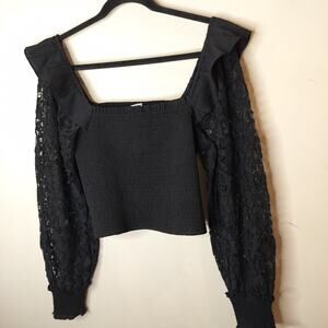 Express black floral lace balloon sleeve smocked top. SizeL. Polyester. (23643)