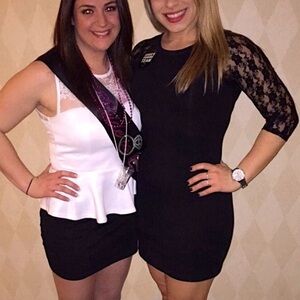 Up for sale is a sexy black dress from Express. It is three quarter sleeved with lace sleeves. There is a zipper in the back. It fits tight to your body.