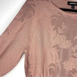 Express Lace Stitched Smocked Peplum Sweater Open Knit Rose Pink Romantic