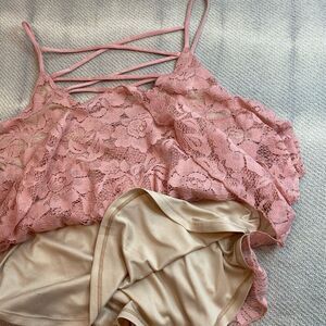 Express Lacey Layered Flowy Top Shirt Size Medium Light Pink Tan