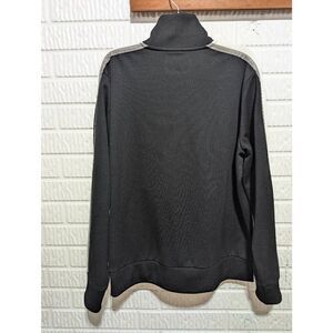 Stay stylish and comfortable with the Express Ladies Black Full-Zip Front Warm-Up Jacket. This long-sleeve jacket in size Large features reflective stripes for added visibility and safety. Perfect for workouts or casual outings, it combines practicality with a sleek, modern design. The full-zip front and lightweight fabric ensure ease of wear and layering, making it an essential piece for any active wardrobe