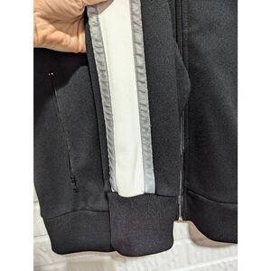 Express Ladies Black Full-Zip Front Warm-Up Reflective Striped Long-Sleeve Jacket Large