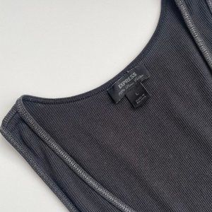 Express Ladies Ribbed L Tank Top Black w Metallic Silver Trim Stitching