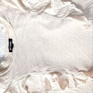 The stripes are hardly existant... faded off in the wash. I would say more of a plain ivory ruffled top.