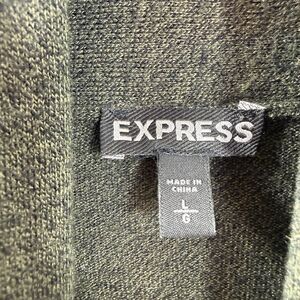 Express Large Sweater Open Front Cardigan Gray Green Shawl Long Sleeve Ruching