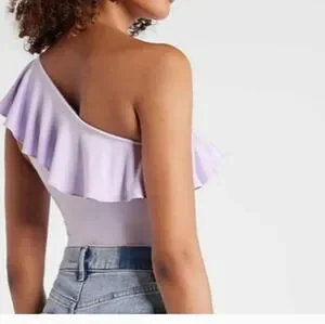 Asymmetric one-shoulder tank with a cascading ruffle. Smooth, lightweight knit fabric. Feminine silhouette ideal for layering or styling up. Worn once. Like new.