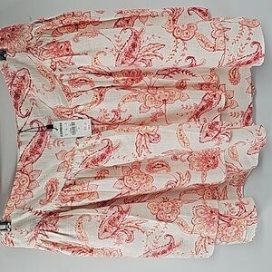 Express Layered Circle Mini Skirt Linen Blend Paisley Print Cottagecore