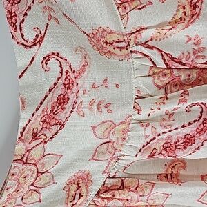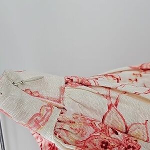 2 Layered Mini in Linen Blend Fabric w/ Side Zipper. Cream Colored with Salmon Pink/ Orange-Toned Paisley Print. Ready for Your Personal Touch!