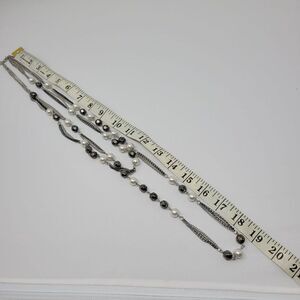 Express Layered Opera Necklace Gunmetal Faux Pearl 38"
