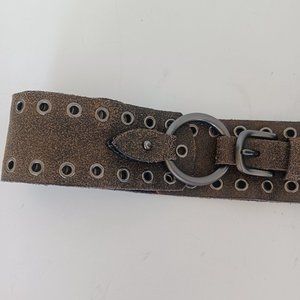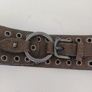 Express Leather Belt Extra Wide Grommet Black Distressed Large Womens