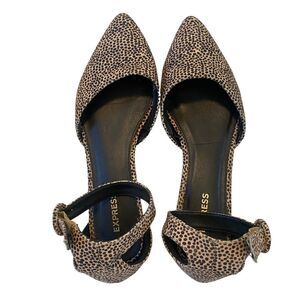 Express Leopard Print Faux Suede Pointed Toe Low Heel Shoes in Ladies Sz. 8
