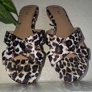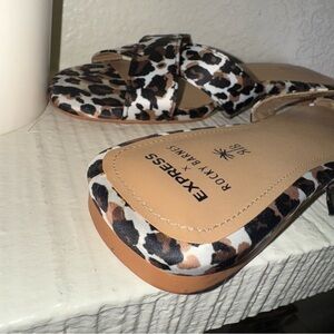 Express Leopard Print Slip On Sandals Size 6 Leather Upper Rocky Barns