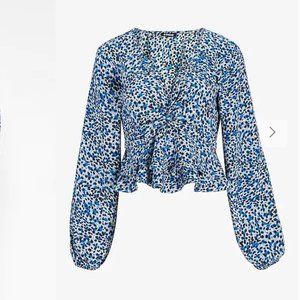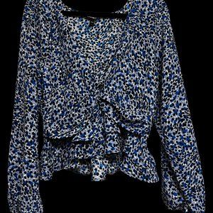 Express Leopard Print Twist Front Tiered Ruffle Peplum Top Size Large