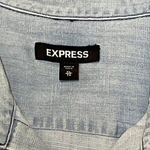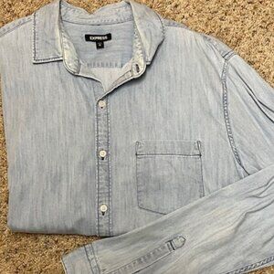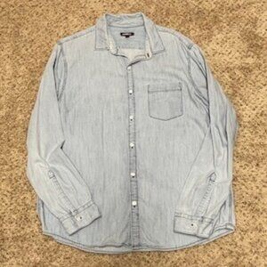 Express Light Blue Distressed Denim Long Sleeve Button Down – XL