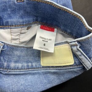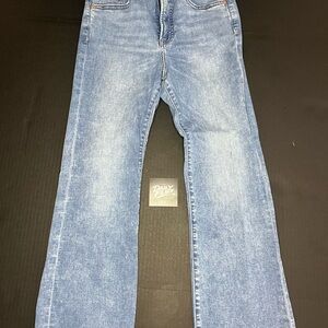 Stylish high rise jeans with a cropped flare. Ideal for casual outings.