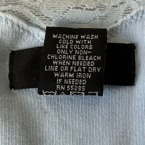 Express women's size XL pullover stretch knit shirt. Light blue with lace trimmed v-neckline and long sleeves with lace trimmed angled hem. 95% Cotton, 5% Spandex; Machine Wash. Excellent condition.