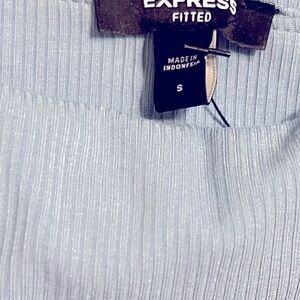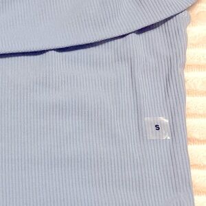 Chic ribbed off-shoulder top in light blue. Ideal for casual wear.