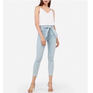 Express Light Blue Wash High Waisted Cropped Denim Jean Leggings with Tie Front