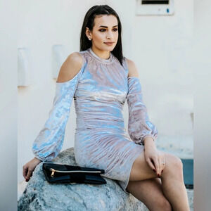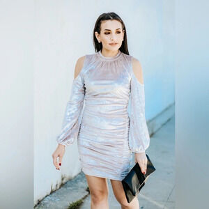Express Light Blush Pink Crushed Velvet Cold Shoulder Dress Size XS