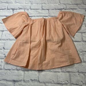Express Light Coral Off-Shoulder Blouse. Linen Blend.