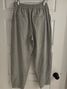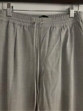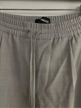 Express Women’s Dressy gray jogger slacks with drawstring. Tailored relaxed fit for everyday wear. Lightweight, breathable fabric for all-day comfort. Versatile neutral color pairs easily with casual and smart-casual looks.