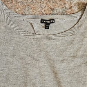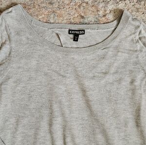 Express Light Gray Long Sleeve Top with white under layer. Open back. Size M