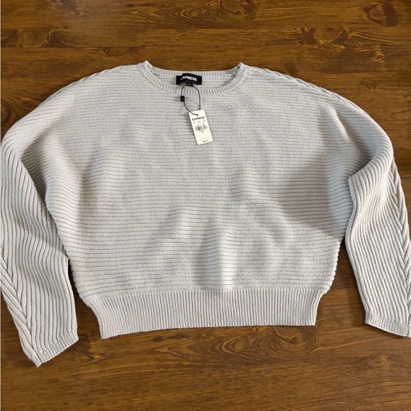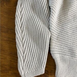 Stylish ribbed knit top in light gray. Perfect for layering. Item 0143