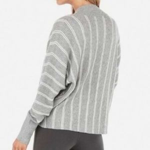 Express Light Gray Ribbed Sweater Cardigan with White Vertical Stripes in XL