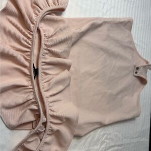 Chic light pink top with ribbed texture. Ideal for everyday wear.