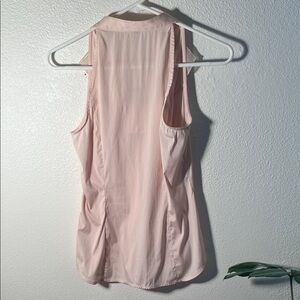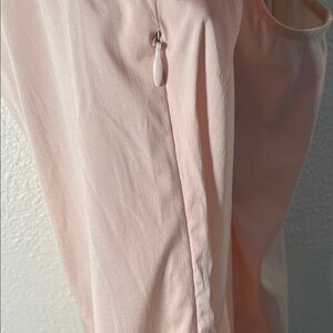 Chic light pink blouse with ruffle detail. Sleeveless halter design. Perfect for versatile styling.