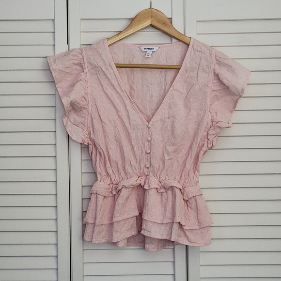 Express Light Pink Ruffle Shirt Size S Excellent used condition, see pictures for reference.