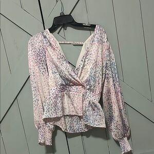 This elegant top has light pink and blue animal print design. Top is perfect for any occasion. The soft fabric and stylish design make it a must-have in your wardrobe.