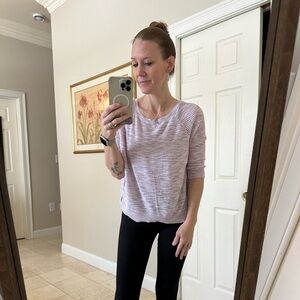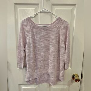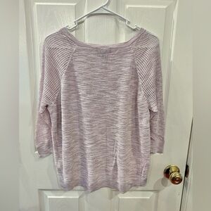 Cozy Express light purple knit sweater with three-quarter sleeves. Perfect for layering.