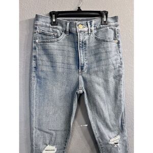 Express Light Wash Skinny High Rise Distressed Raw Hem Jeans Size 4R Women’s