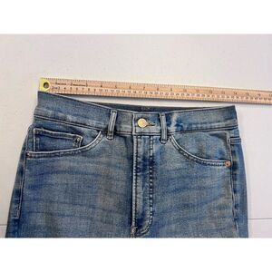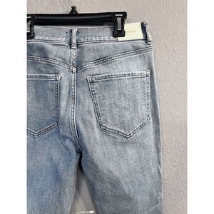 Elevate your denim collection with these Express skinny jeans in a light wash. These high-rise jeans are perfect for women who want a comfortable and stylish fit. The distressed and raw hem features add a touch of edginess to these versatile jeans, making them a great option for any occasion.