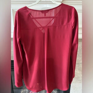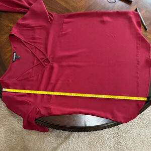 Express Lightweight Long Sleeve Top Loose Fit Strap V Neckline Red Size…