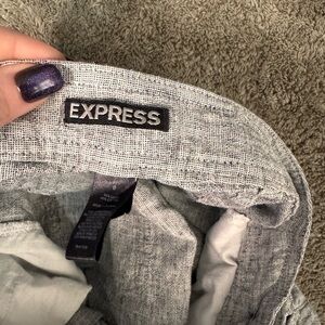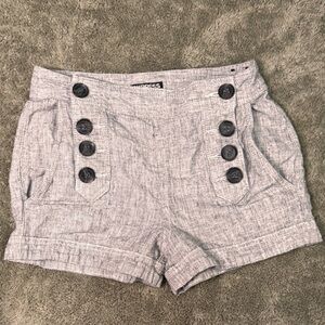 Express Linen Blend Button-Front Shorts Gray Textured | Size Small | High Rise