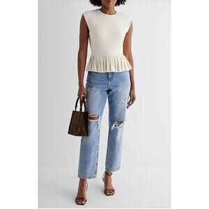 Express Linen-Blend Crew Neck Peplum Tee Swan Color Size Medium New Boho