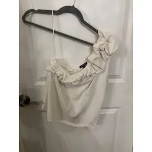Express Linen-blend Ruffle One Shoulder Tank. Ivory. Size Small