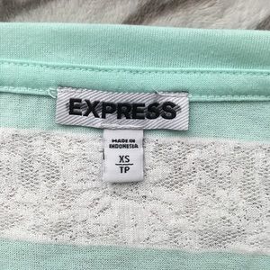 really flattering scoop neck long sleeve from express with mint and white lace stripes. EUC only worn twice