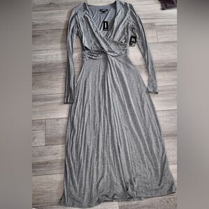 Express Long Sleeve Cross Front Knit Midi Dress - Gray Sz S Workplace Lagonlook