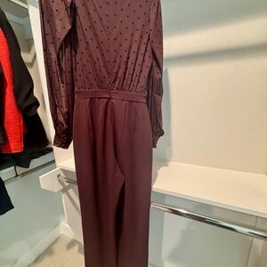 Express Long Sleeve Swiss Dot Jumpsuit – Burgundy