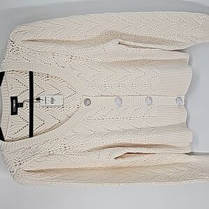 Express Loose Knit Crystal & Pearl Buttoned Cardigan