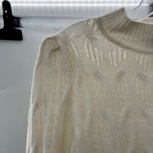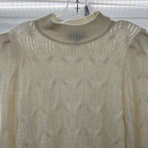 Express Loose Knit Pullover Sweater Long Bishop Sleeve Mock Neck Cream Size XXS