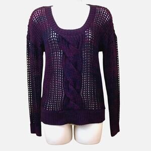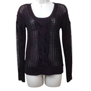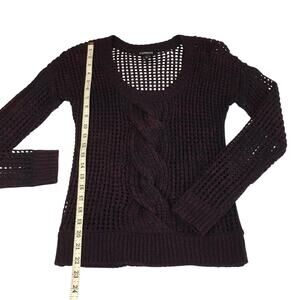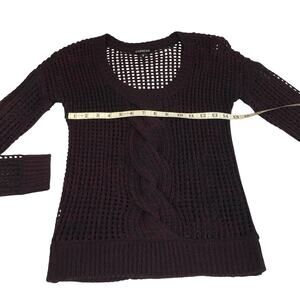 Perfect for layering and all occasions, Express Black Burgundy Loose Weave Cable Knit Pull Over Sweater