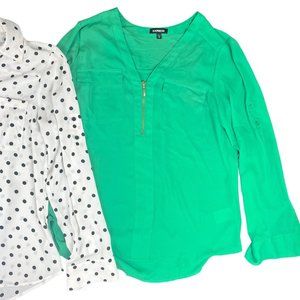 Express Lot Of 2 Blouses Shirts Black White Polka Dot Portofino Green Women's M