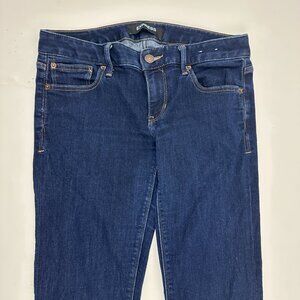 Express Low Rise Barely Boot Raw Hem Women's size 6P Dark Blue Denim Jeans Gre