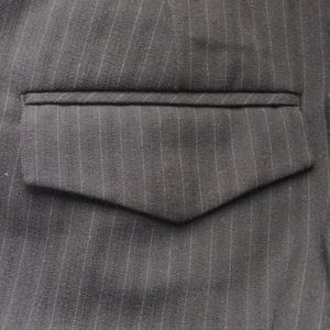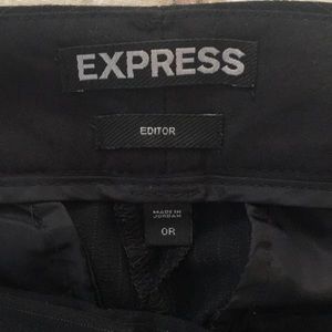 Like new. Express low rise black striped pant. Sophisticated for meetings and nights. Waistband, 2 front stand hand pockets and 2 hidden closer back pockets. Zip fly. Inseam: 33. Professionally cleaned.